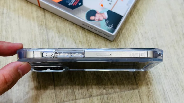 這是 iPhone 15 Pro 原色鈦金屬,實際裝上 極透明(灰圈)、極透明(金圈)手機殼的樣子,全透系列和 iPhone 原色鈦金屬都算是蠻好搭配的,如果想要展現新手機的顏色,那就可以選 全透系列。