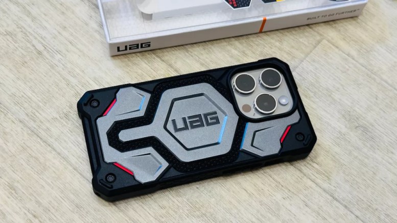 這是今年 迷彩系列 MagSafe 的新顏色:幾何黑,使用 50% 再生材料製成,搭配 iPhone 15 Pro 原色鈦金屬,多了一種軍風野營感,非常好看,